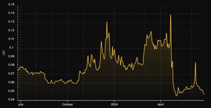 Bitcoin’s hash price, a critical measure of miner revenue per terahash, has recently approached its all-time low. According to Luxor Technology’s Hashrate Index, Bitcoin’s hash price fell by nearly 52%, reaching $0.0459 per terahash second on June 24, down from a two-month high of $0.095 on June 8. Though it nearly hit the record-low of $0.0447 set on May 1, it has since rebounded slightly to $0.0479.