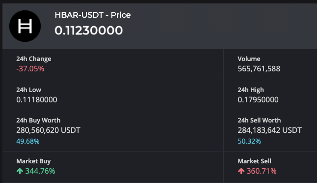 A BlackRock spokesperson has since clarified that the company has no commercial ties with Hedera and has not chosen Hedera for tokenizing any of its funds. As a result, HBAR saw a significant price correction, dropping 37% to $0.112 within 24 hours of its peak at $0.179.